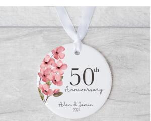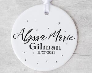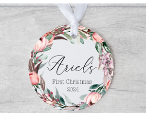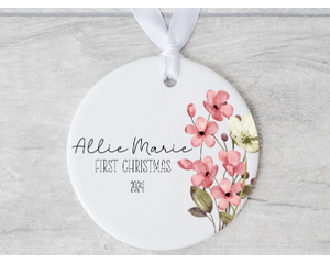 Pink Floral Baby's First Christmas Ornament w/ Name