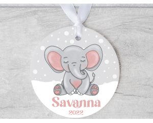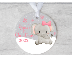 Cute Elephant Baby's First Christmas Ornament w/ Name
