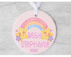 Baby Girl Rainbow Ceramic Christmas Ornament 2024