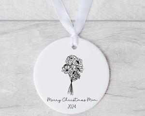 Merry Christmas Mom Minimalist Floral Ornament 2024